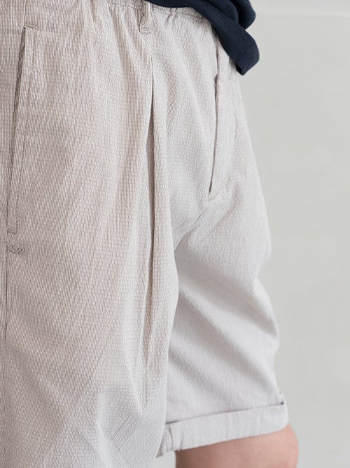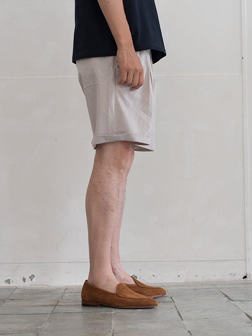 人気のイージーフィットショーツモデルMIKE。1プリーツで股上も深め、全体的にリラックスフィットのシルエットです。