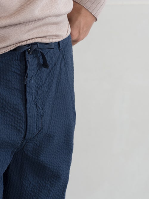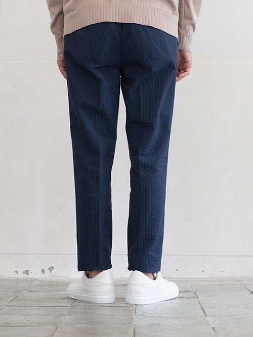 シアサッカー素材を使用した、軽い着心地が魅力的な一着。