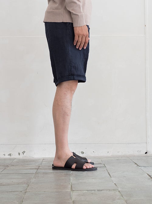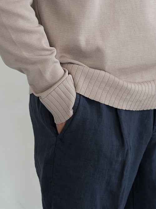 リネン100%素材を使用、軽い履き心地も魅力的な一着。