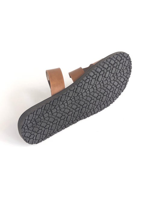 歩行の際に地面からの衝撃を吸収するラバーソールを使用レザーサンダル。インソールのレザーもクッション性が高く、見た目以上に歩行性に優れた一足です。