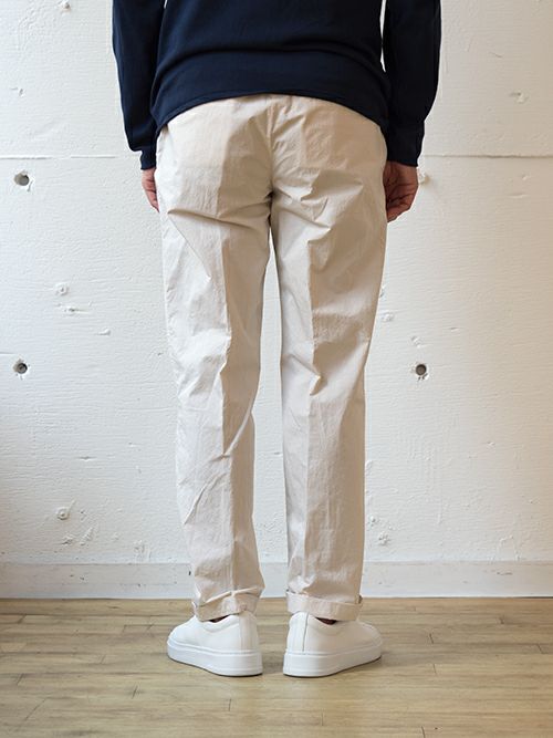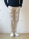 オフホワイトのタイプライター素材は快適な履き心地で、大人向けのリラックス感漂うパンツです。