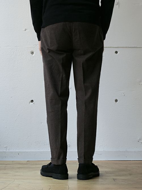 ドローコード、1プリーツモデルのマイクロチェックのブラウンカラーです。