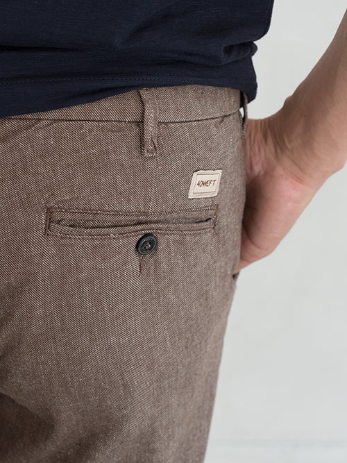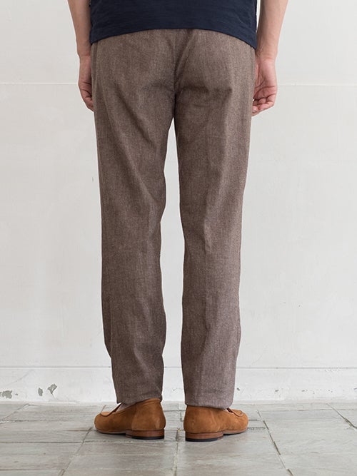 定番のテーパードパンツLENNY。ノータックで股上も比較的浅く、全体的に細めのテーパードシルエットです。