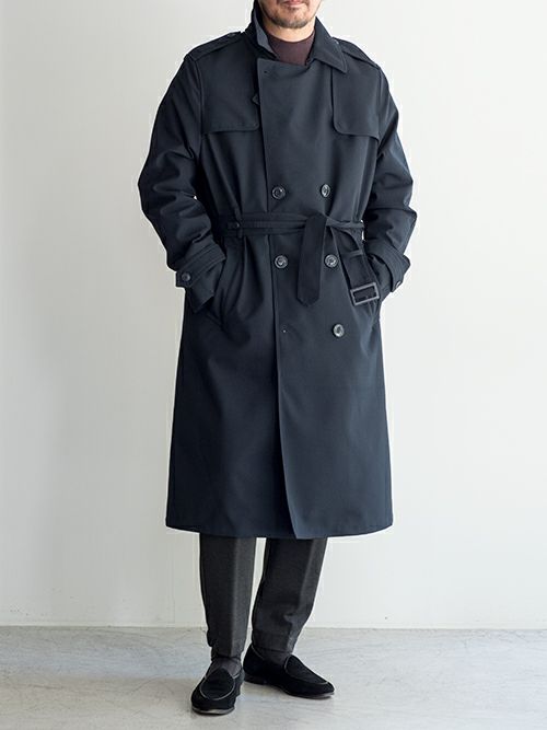 ウール混の中綿入りライナーが付いたトレンチコート。肩口はスプリットラグランになっており、シルエットも程よいゆとりがあるため、現在の空気感と快適な着心地を兼ね備えた一着です。
