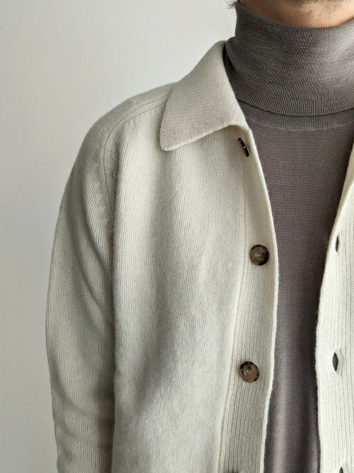 ウール100%のニットシャツ。ふんわりと柔らかく、暖かな風合いが魅力的な一着です。