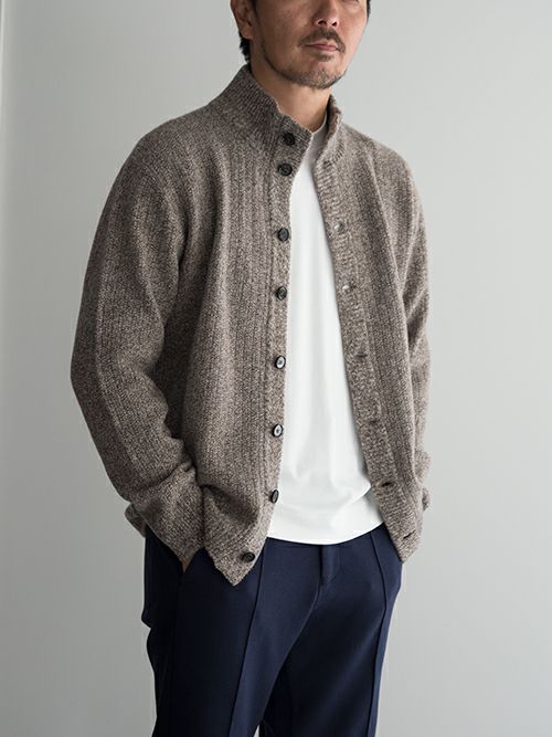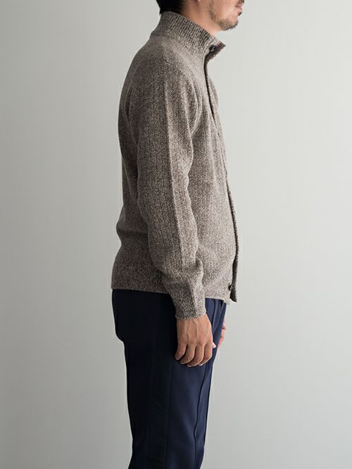 カシミヤ混ウールのニットブルゾン。ふんわりと柔らかく、暖かな風合いが魅力的な一着です。