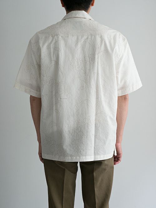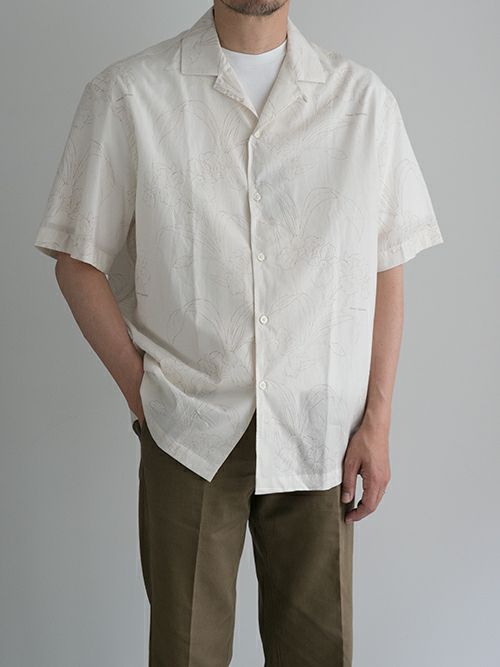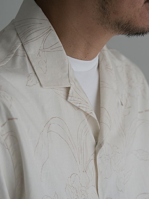 軽やかなコットン生地に、上品なタッチのボタニカル柄が描かれたオープンカラーシャツ。