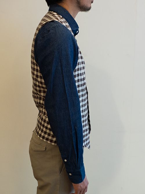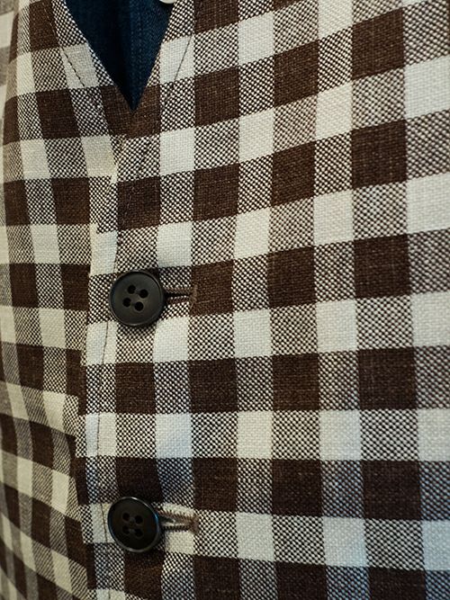 通常オッドベストは後身頃をキュプラなど異素材にすることが多いのですが、同素材を用いることにより幅広く着ていただけるように仕上げました。
