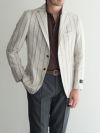 イタリアの伝統あるファブリックFERLA(フェルラ)の四者混生地を使用した春夏のストライプジャケット。単体の素材では出せない豊かな表情も魅力的です。