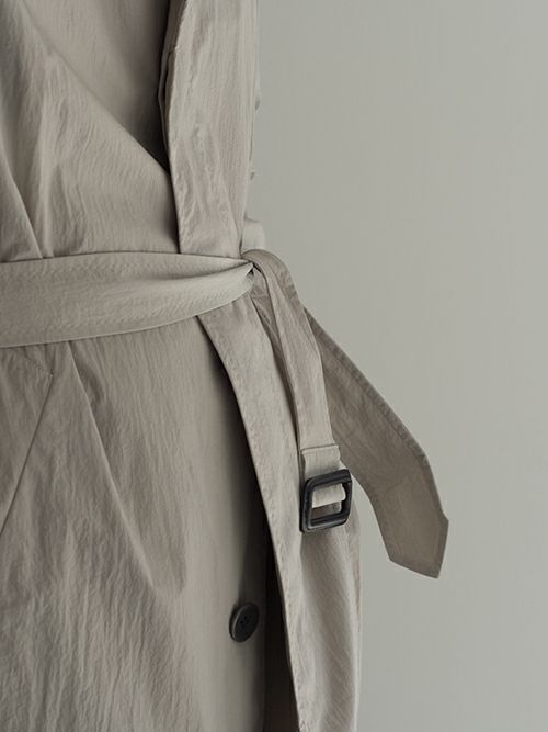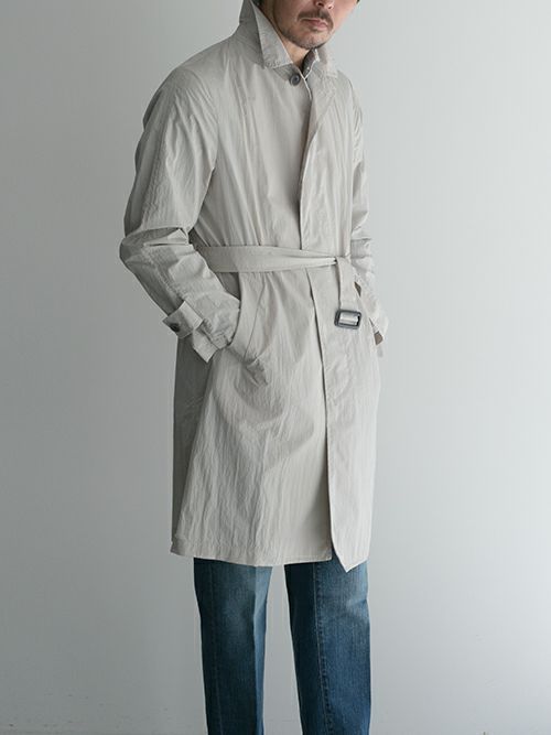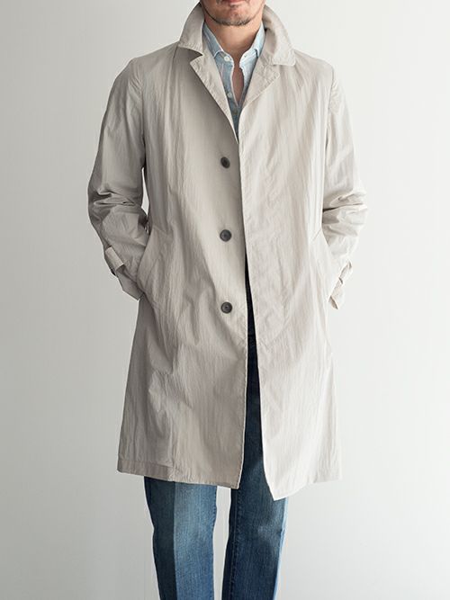 比翼仕立てにする事で、フロント釦を閉じた際のクラシックな雰囲気が印象的なステンカラーコート。