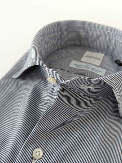 カッティングとパターンの巧みさがこのシャツの真骨頂で、マシンメイドのシャツとして妥協なく作り込んだハイエンドなコレクションです。