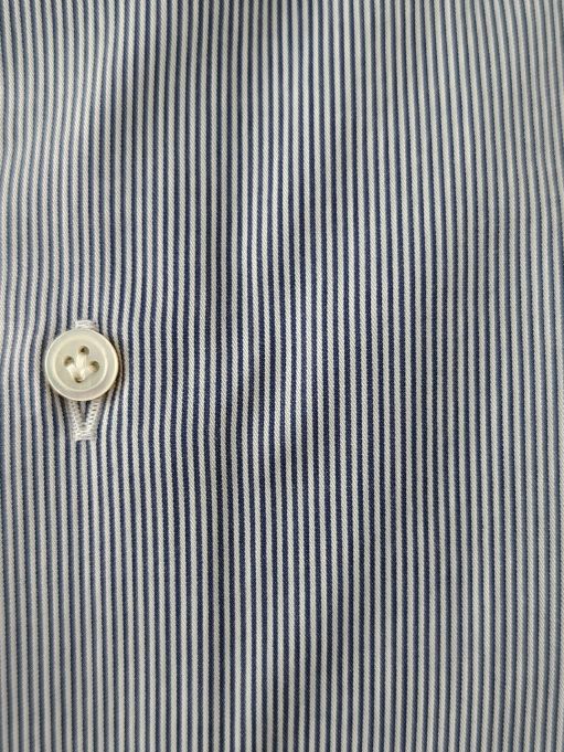 またボタンは独特な艶があり厚みのある白蝶貝ボタンを使用し、鳥足掛けのボタン付けで非常にエレガントな仕上がりになっております。
