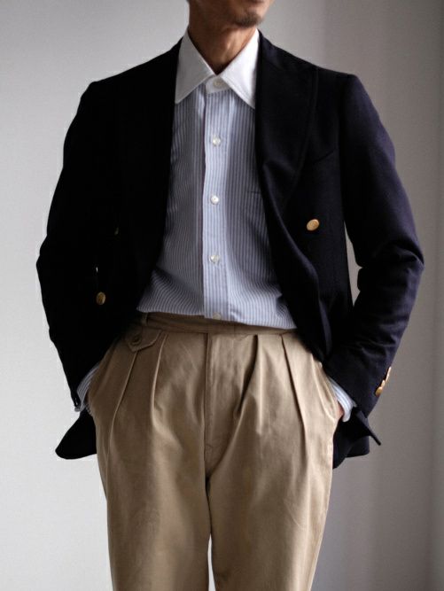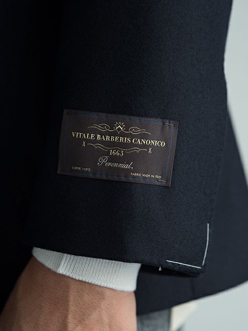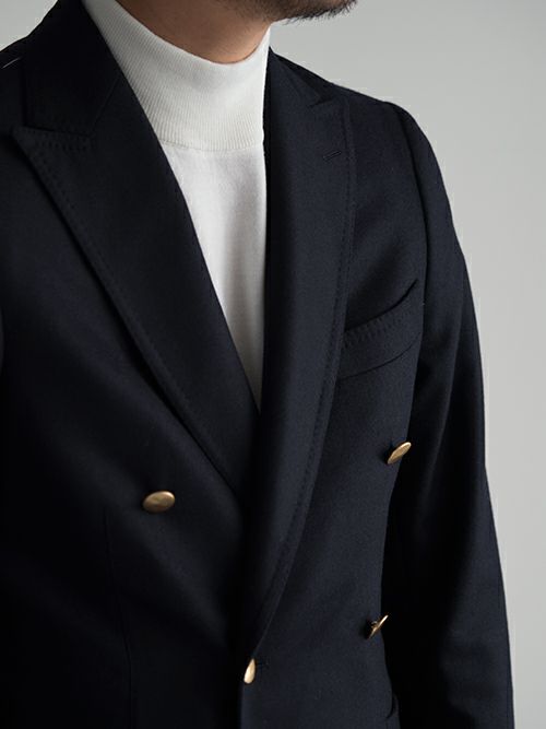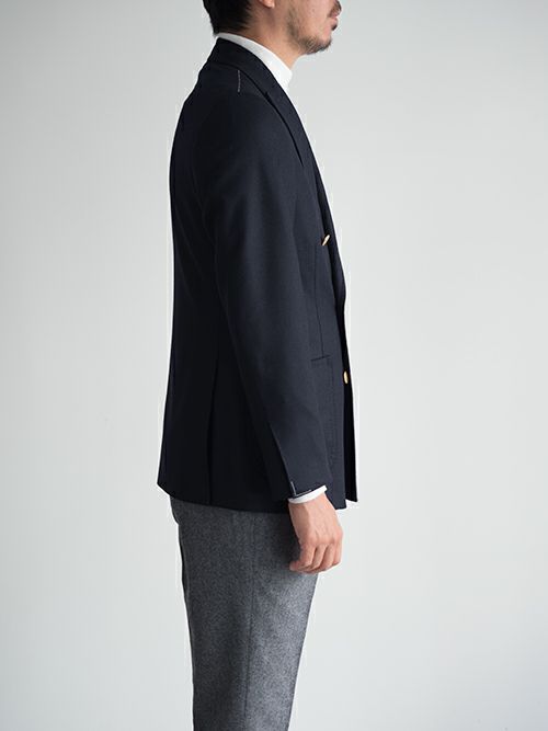 イタリアのCANONICO生地を使用したダブルジャケット。パッチポケット仕様で、着丈を短すぎず長すぎずのバランスにし、デニムやチノなどの カジュアルパンツは勿論、 グレーのウールスラックスにもしっかり対応してくれる秀逸なジャケットです。