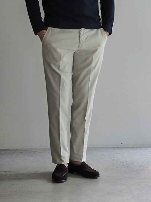 清涼感があり、春夏シーズンに適した素材感のテーパードパンツです。