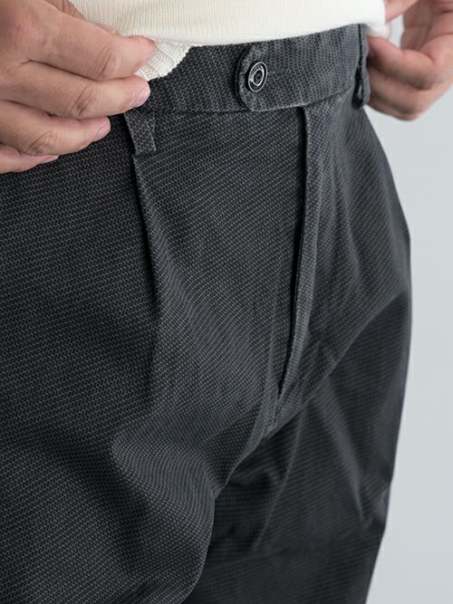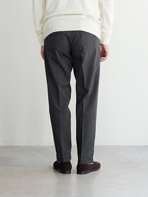 ワンタックでストレッチが効いており、すっきりした裾のシルエットにも関わらず窮屈さを感じずに着用いただけます。