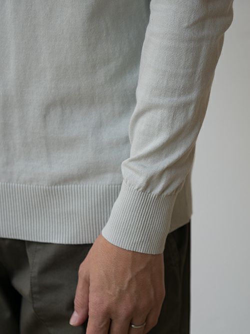 ベーシックなライトグレーで単体の着用は勿論、ジャケットなどのインナーにも合わせていただける万能さも兼ね備えています。