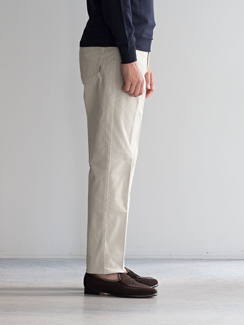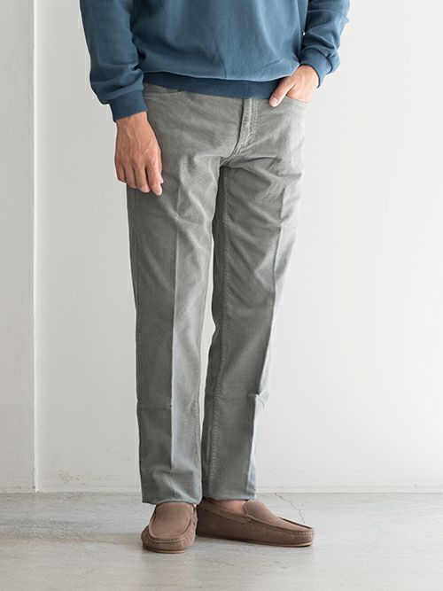 細畝のコーデュロイが上品な印象の5ポケットパンツ。温かみのある生地は、秋冬シーズンに適した一着です。