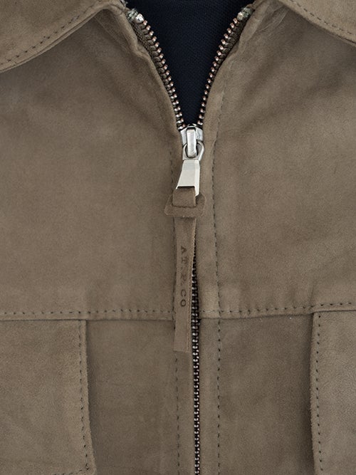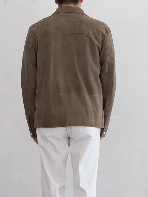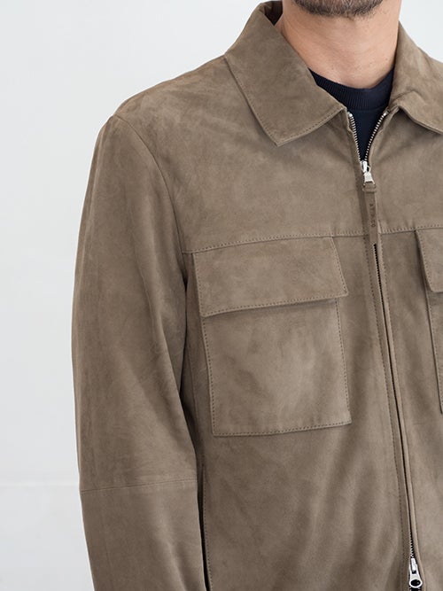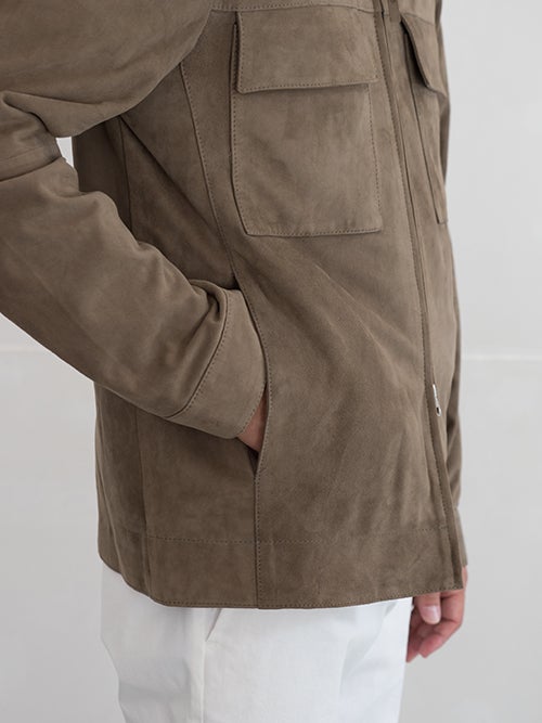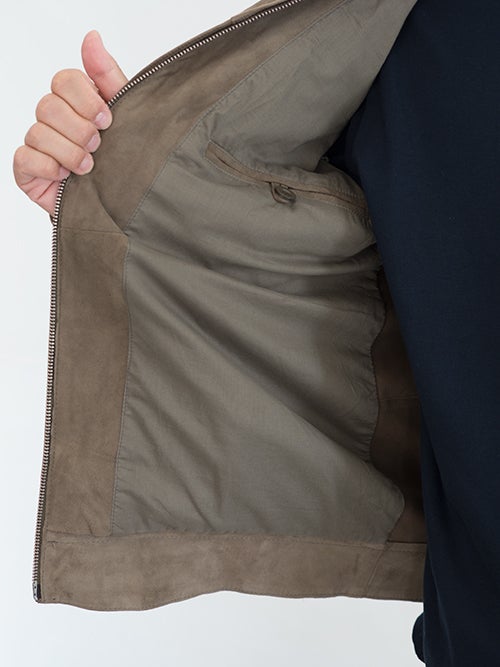 ZIPジャケットモデルALBIN、モカベージュのシープスウェードを使用したベーシックな一着。