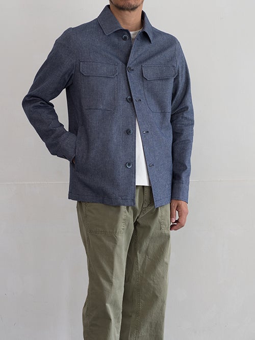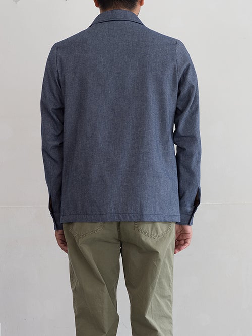 人気のカバーオールモデルORLANDO、インディゴカラーのコットン×リネン素材を使用した軽い着心地の一着。