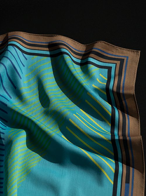 ファッションアイテムとして絶妙なサイズ感で、ハンカチとしての使用は勿論、ポケットチーフやネッカチーフとしてもご使用頂けます。女性ですとバッグに結んでも様になります。