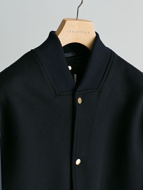 少しゆとりをもたせたリラックス感のあるサイジングのスタジャン。袖の切り替えには、高級感のあるアルカンターラ(人工スエード)を使用し、ラグジュアリーな印象。普段クラシックなスーツを着る大人が着ることのできるカジュアルアイテムです。