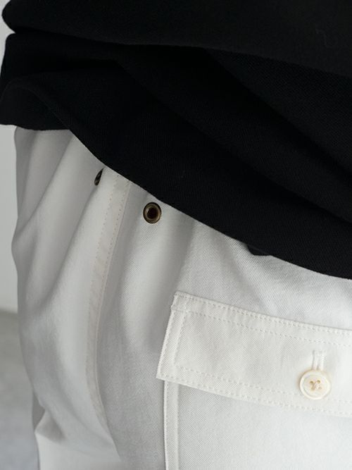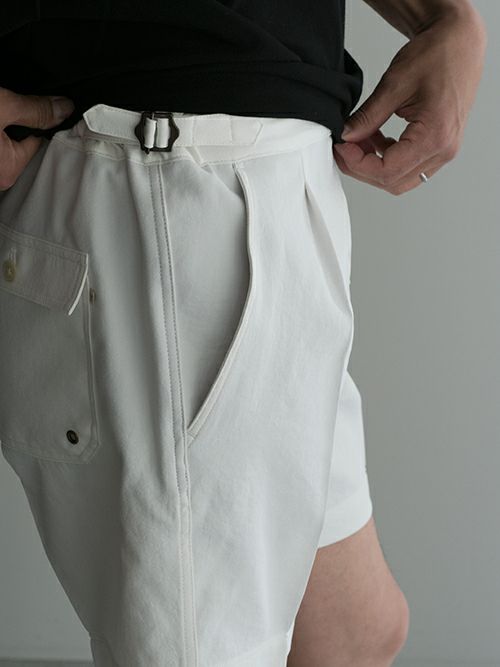 ウエストはドローコードを内側に配し、バックはシャーリング仕様。更に両サイドにはアジャスターが付いており、サイズの調整が可能です。