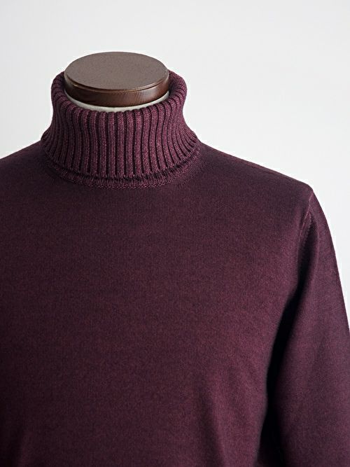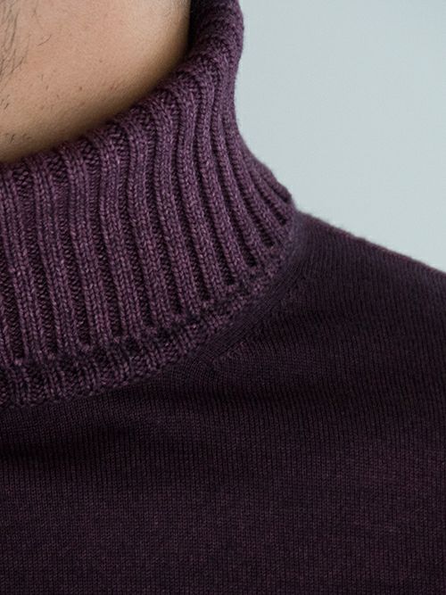 ネックリブを9ゲージのミドルゲージの糸を使用し、少しカジュアル感を持たせたタートルニットです。