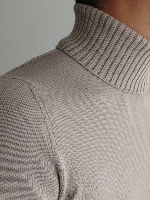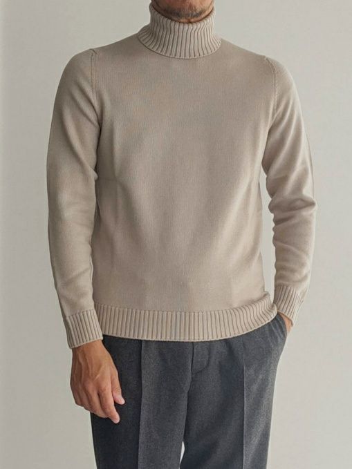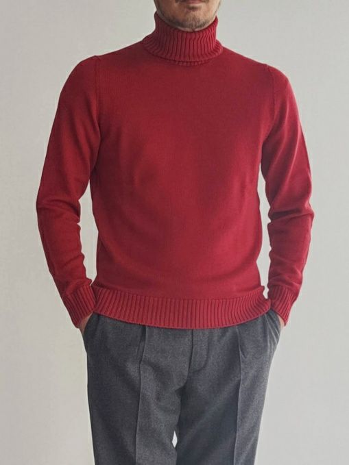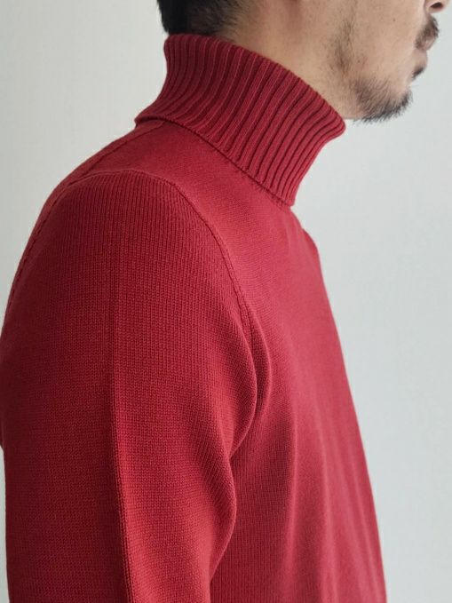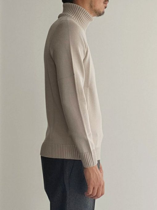 秋冬に重宝するタートルネックのミドルゲージニット。メリノウールの艶感が、落ち着いた大人のこなれを演出します。