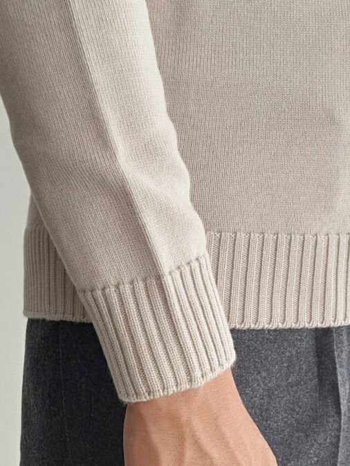 ドルモアらしい上質で柔らかな着心地、そして一枚での着用は勿論、すっきりとしたシルエットはジャケットやコートのインナーにも合わせていただける万能さも兼ね備えています。