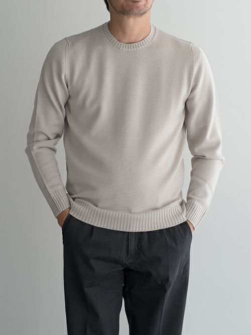 ウール100%のクルーネックニット。 綿密な縫製によって上品な風合いに仕上がっています。