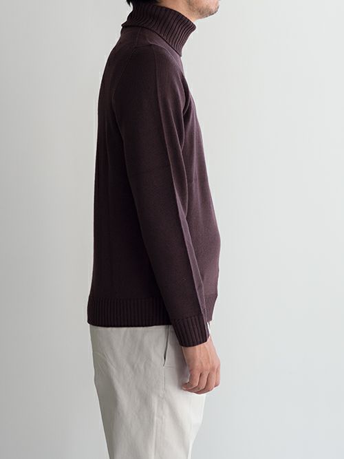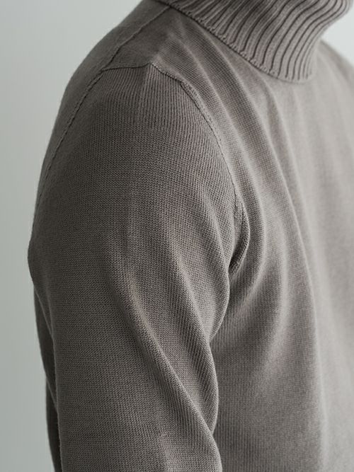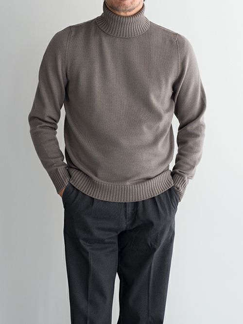 秋冬に重宝するタートルネックのミドルゲージニット。メリノウールの艶感が、落ち着いた大人のこなれを演出します。