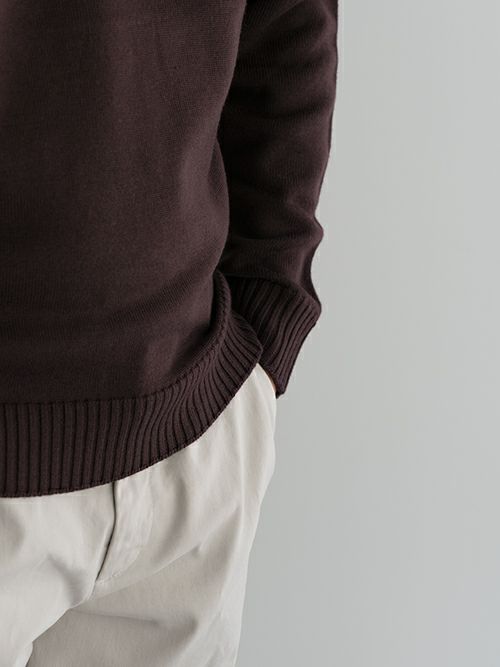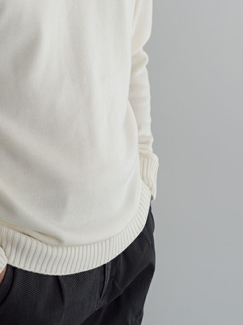 ドルモアらしい上質で柔らかな着心地、そして一枚での着用は勿論、すっきりとしたシルエットはジャケットやコートのインナーにも合わせていただける万能さも兼ね備えています。