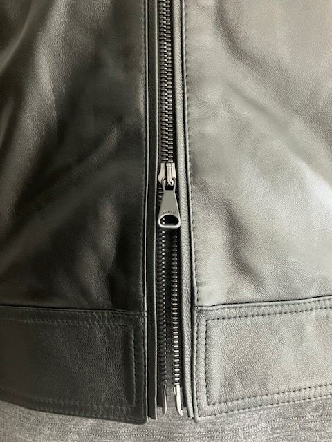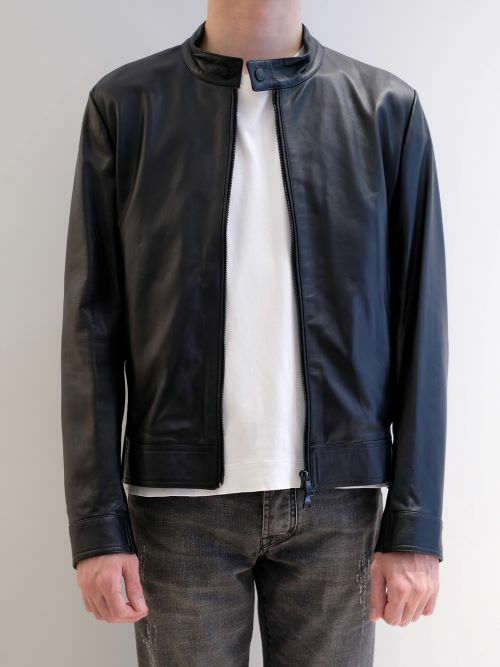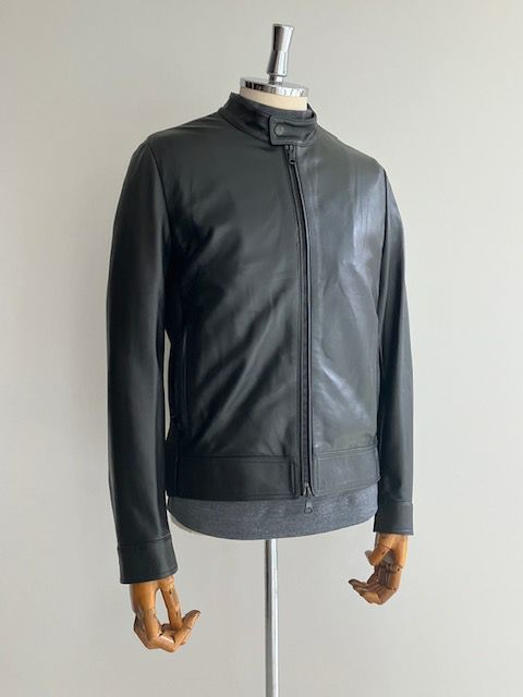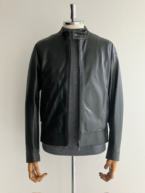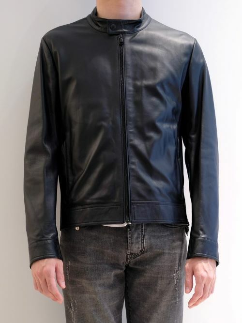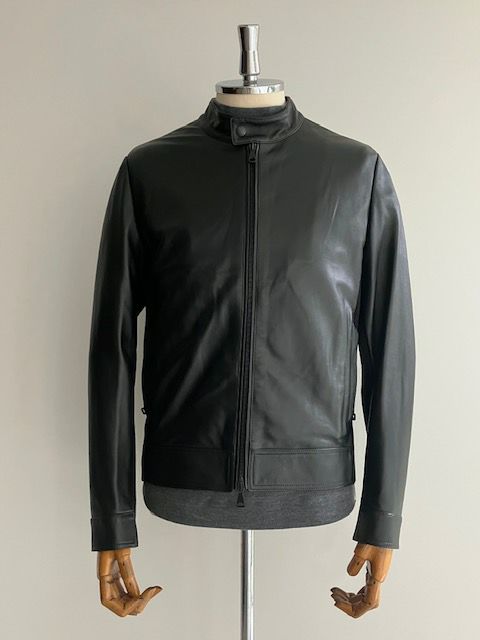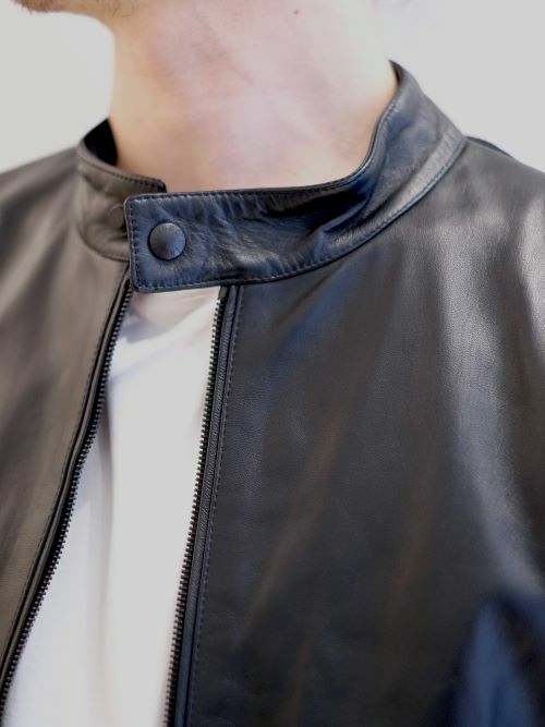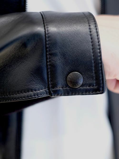 シングル仕立てのライダースデザインはスタイリッシュな印象。フロントはブラックカラーのダブルジップ仕様。袖口のスナップボタンやジップで開閉できるフロントの縦ポケットなど、実用性とエレガントな魅力を兼ね備えています。