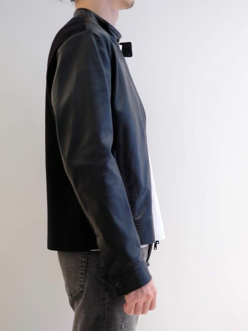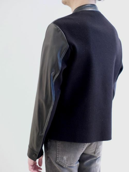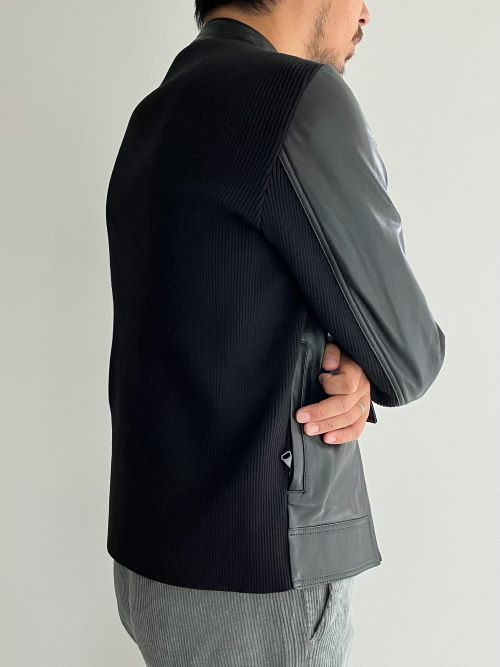 モデルは定番JURIのNAPPA MAGLIA。袖を含め、脇から背面がニット素材になっており、軽さとデザイン性を兼ね備えた一着。ボリュームが抑えられている事で、コートなどのインナー使いも可能な汎用性の高さも魅力です。