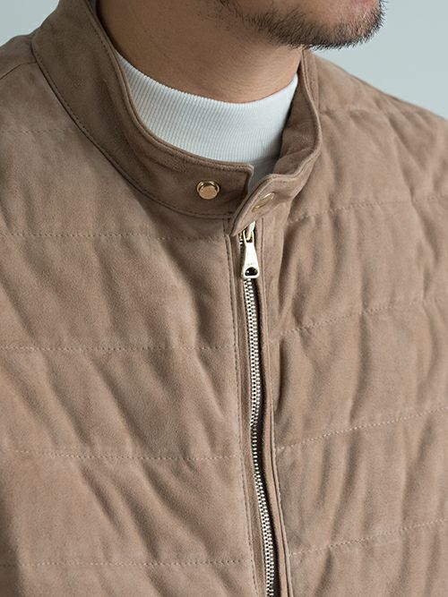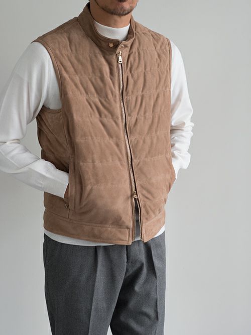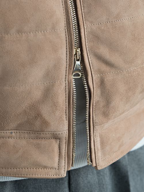 EMMETIの代名詞とも言えるモデル「JURI(ユリ)」。そのJURIをベースとしたゴートスエードのダウンベストです。
