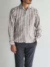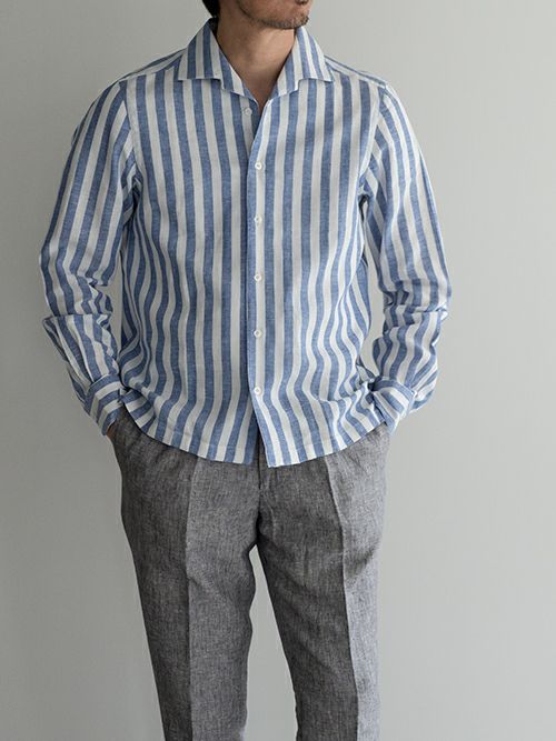 綿麻素材を使用したオープンカラーシャツ。軽やかな着用感で、ブロックストライプが印象的でアクセントになる一着です。