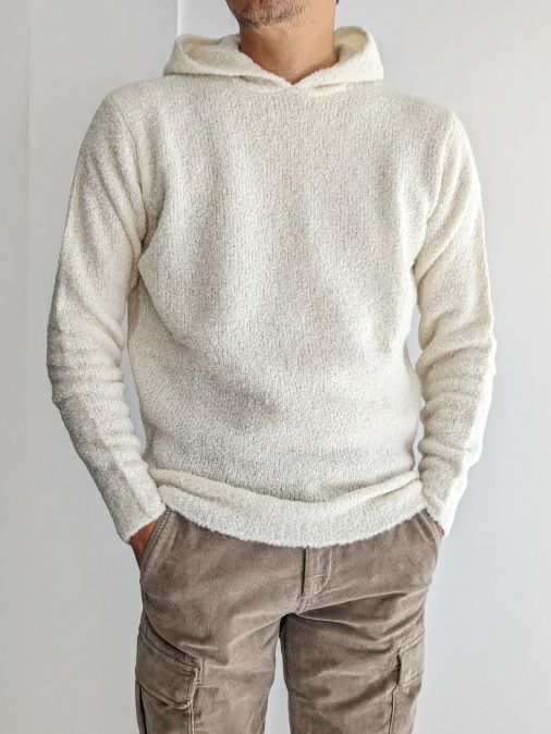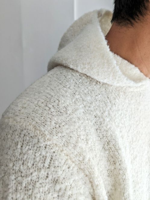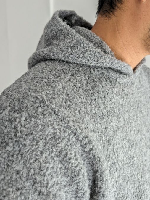 アルパカ混のニットパーカー。非常に軽く、そして温かな生地が魅力的です。アームや身幅がすっきりとしており、細身できれいなシルエットながら、柔らかな肌触りは締め付け感がなくリラックスした着心地です。
