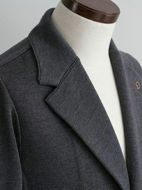 ノッチドラペルにフロントのパッチポケット、そしてサイドベンツのカジュアル且つシンプルなディテールが、生地の上質さと仕立ての良さを際立たせており、ブランドアイコンでもあるブートニエールがその名の通り花を添えます。