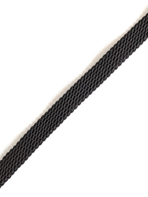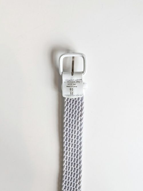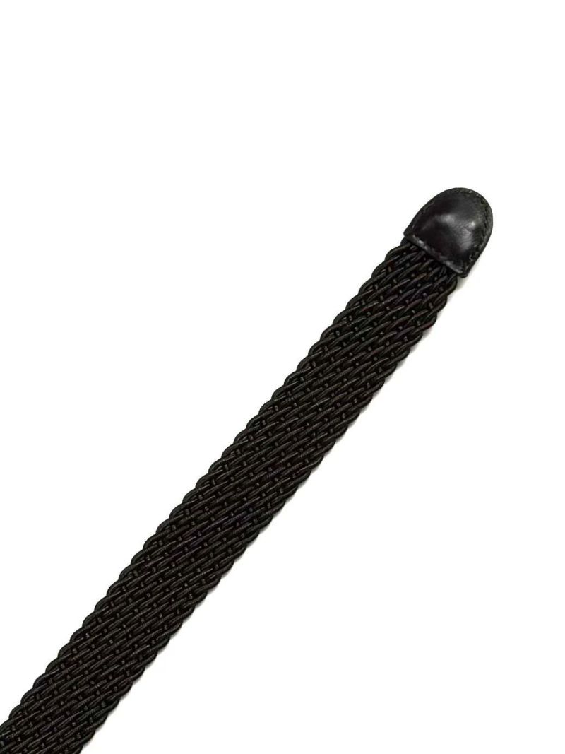 レーヨン混のラバーを丁寧に編みこんだメッシュベルト。バックルにはレザーを使用する事で高級感のある仕上がりです。