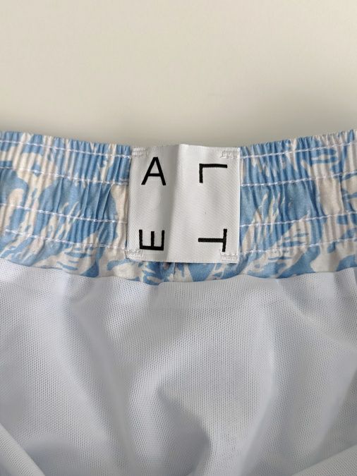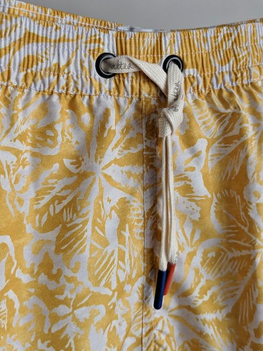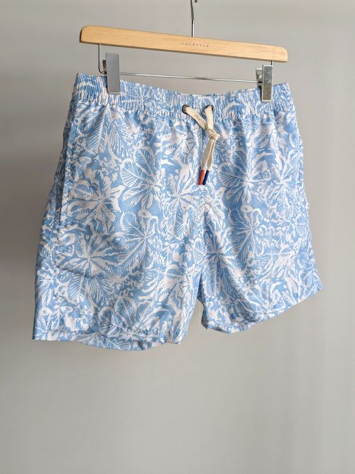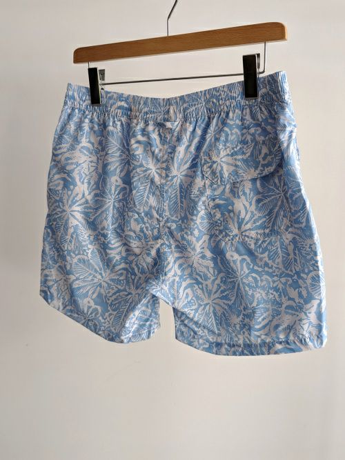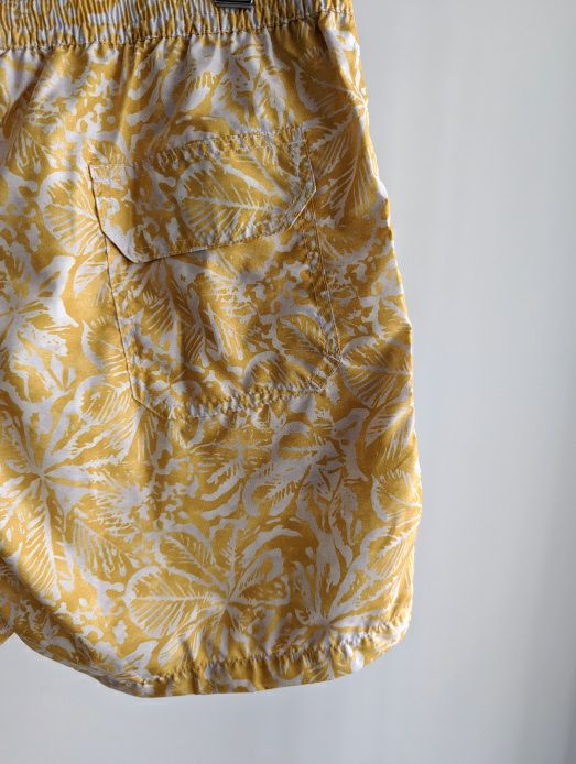 肌触りの良いポリエステル素材を使用したスイムショーツ。ウエストはゴム仕様で、調節ができるドローコード付き。内側にはしっかりとメッシュを張った本格的な作りです。持ち運びの際に便利なジップ付きの収納袋も完備。