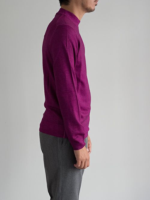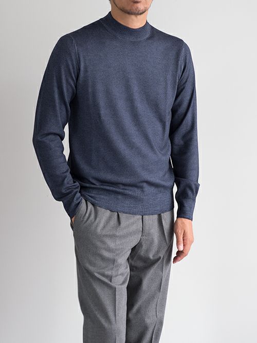 ハイゲージですが、一枚で着用した際にもしっかりと存在感のある適度な厚みが魅力的な汎用性の高い一着で、ジャケットのインナーには勿論ですがレザーアイテムのインナーとしても好相性です。