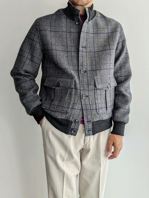 カシミヤ混ウールを使用し、スポーティーになり過ぎず上品な印象のブルゾン。普遍的で定番と言えるデザインも、カラーリングの妙が際立つチェック柄により新鮮な印象を纏います。
