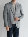 ノッチドラペルにフロントのパッチポケットなど、カジュアル且つシンプルなディテールが生地の上質さと仕立ての良さを際立たせる一着。ブランドアイコンでもあるブートニエールがその名の通り花を添えます。