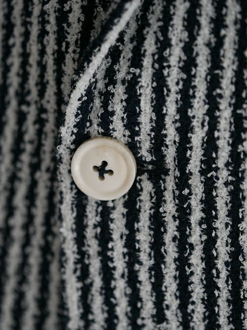 コットンポリエステルのパイル地を使用したカジュアルジャケット。春夏に適した、軽く涼やかな着用感です。