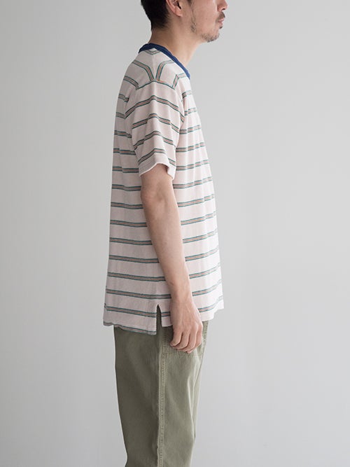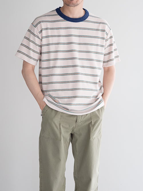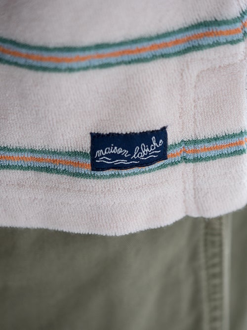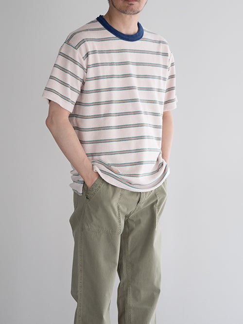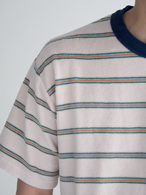 生地は肌触りの良いコットンパイル。センスを感じる淡いピンクをベースに、キャッチーなボーダー柄が魅力的です。