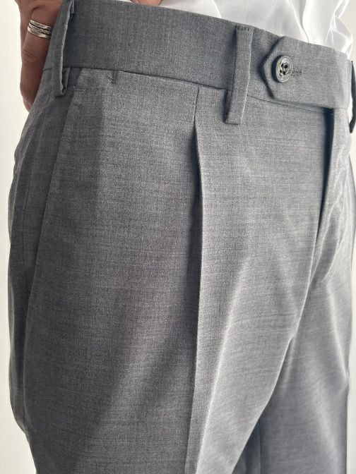 上質なウール生地のワンプリーツスラックスは、程よく腰回りにゆとりがあり、今のトレンドを上手く取り入れながらも、しっかりとテーパードをかけた綺麗なシルエット。ジェルマーノらしいナポリを象徴とするような仕上がりです。