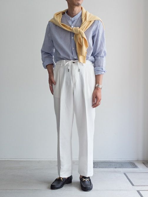 通気性が良く春夏シーズンに適しており、リラックス感と上品さを兼ね備えた一着。
