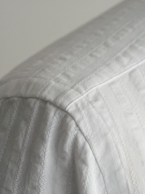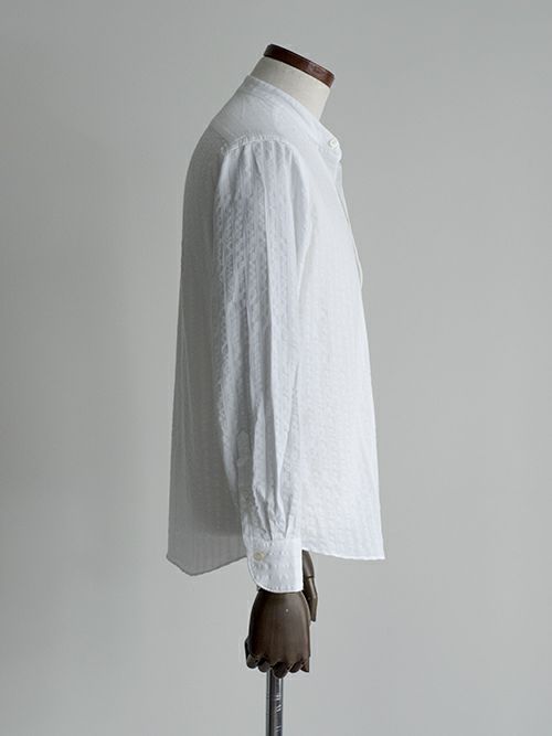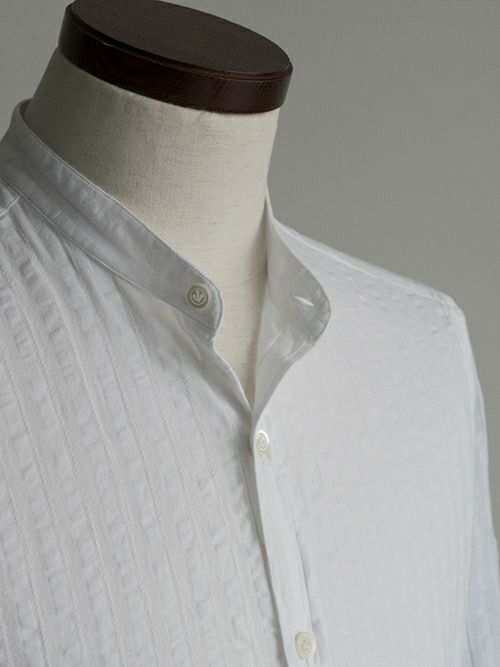 シアサッカー生地で季節感があり、ヘンリーネックのカットソーを思わせるようなバンドカラーで、ジャケットスタイルに程よい抜け感が生まれます。VINCIFIT(ブィンチフィット)のスリムなシルエットです。
