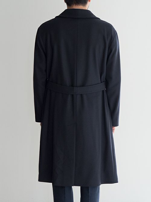 ウール、ナイロン混生地を使用したHevo(イーヴォ)のダブルフロントのショールカラーコート「BITETTO(ビテット)」。