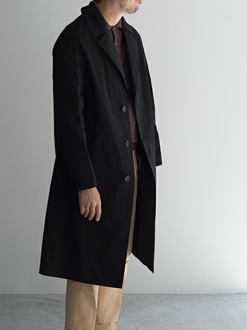 ポリエステル、コットン混生地を使用したHevo(イーヴォ)のステンカラーコート。